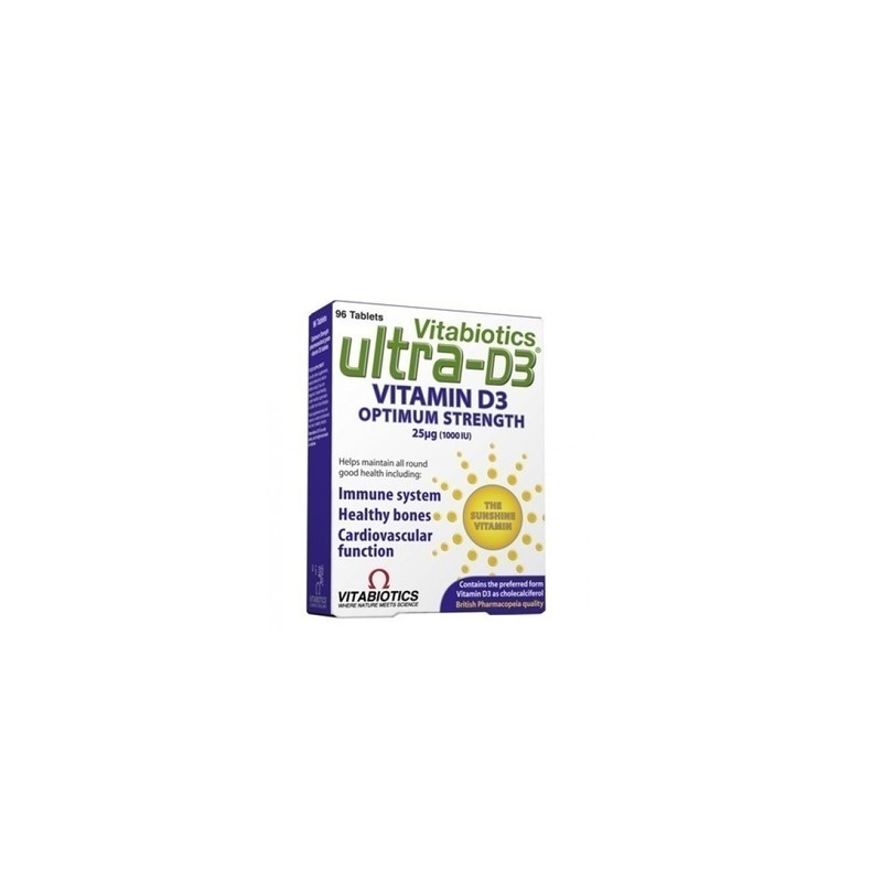 The Ultra-D3 of Vitabiotics is a unique product that provides 25mg (1000IU) vitamin D per tablet. The Ultra-D3 is 100% D3 is the active form of D produces and the organization itself . Vitamin D has benefits in many areas of health, including bone , nerve , brain , nervous and cardiovascular, and its deficiency has been associated with many pathological conditions .