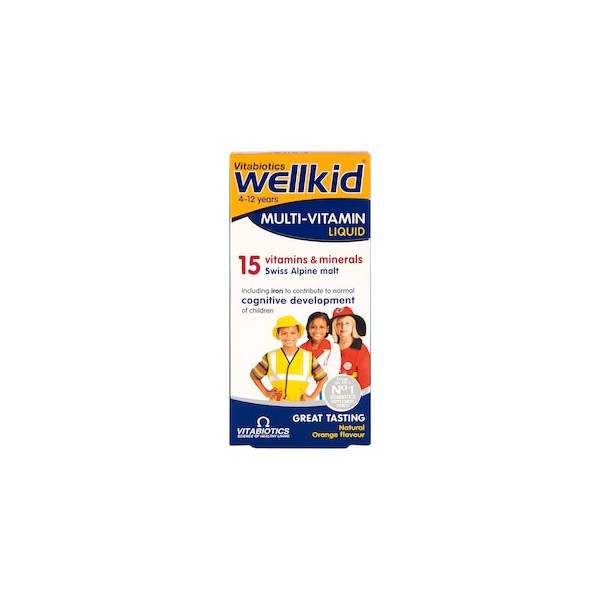 - Wellkid Multi-vitamin Liquid is formulated with iodine which contributes to normal growth in children, plus vitamin D which helps maintain normal growth and development of bone in children.