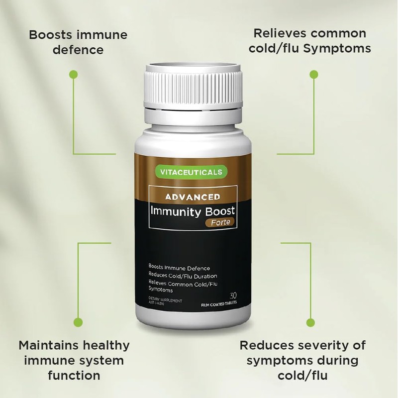 Vitaceuticals Advanced Immunity Boost Forte - Immune Support Supplement with Andrographis, Echinacea, Olive Leaf Extract, Zinc & Black Elderberry | Reduces Cold & Flu Symptoms | Respiratory Health & Well-Being | 60 Tablets