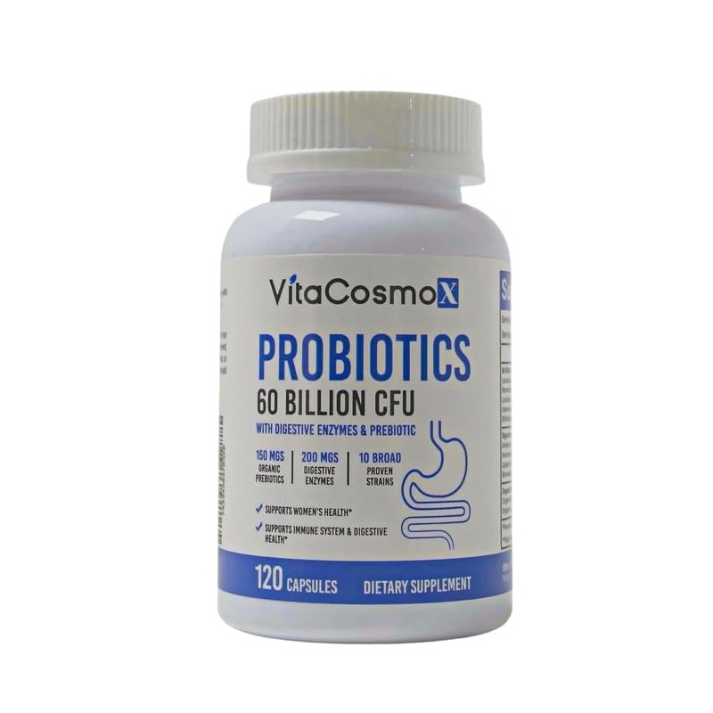 VitaCosmoX Probiotic 60 Billion CFU with Prebiotics, Digestive Support, 120 Veggie Capsules
