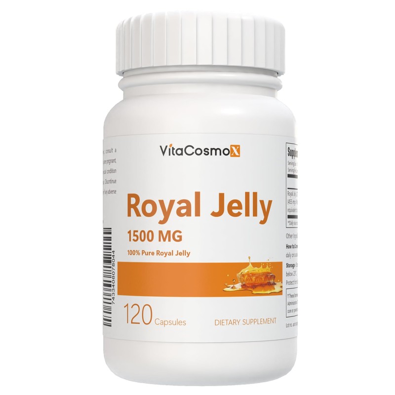 VitaCosmoX Royal Jelly Supplement, 1500mg, 120 Vegan Capsules - 60 Servings, Gluten Free, Non-GMO, and Vegetarian Friendly
