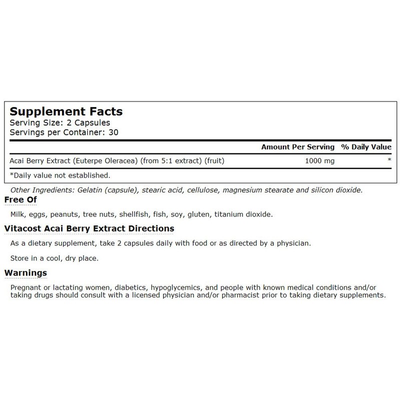 Vitacost Acai Berry Extract -- 1,000 mg per serving - 60 Capsules