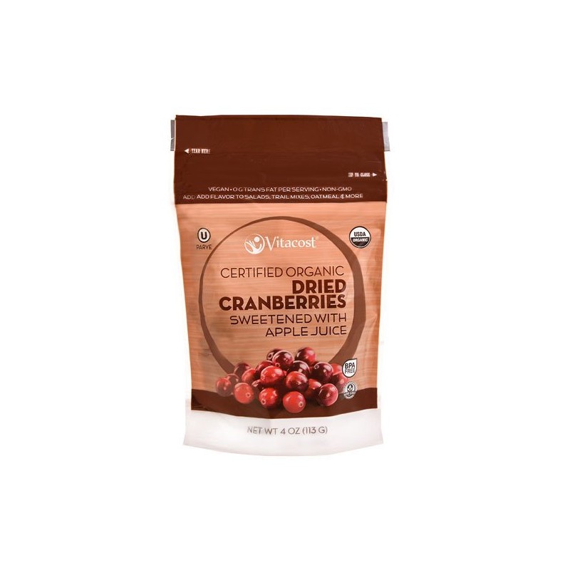Vitacost Certified Organic Dried Cranberries Sweetened with Apple Juice -- 4 oz (113 oz)