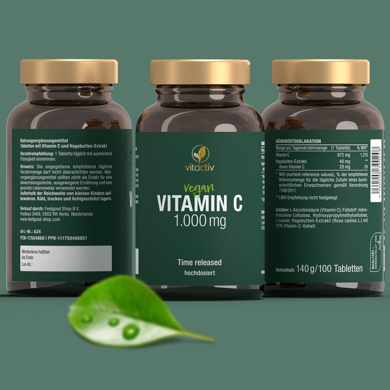- FEEL GOOD! 1000 mg Vitamin C mit 40 mg natürlichem Hagebutten-Extrakt. Hochdosiertes Vitamin C mit cleverem Retard Effekt zur Rundumversorgung über den Tag. Unterstützung fürs Immunsystem u.v.m.