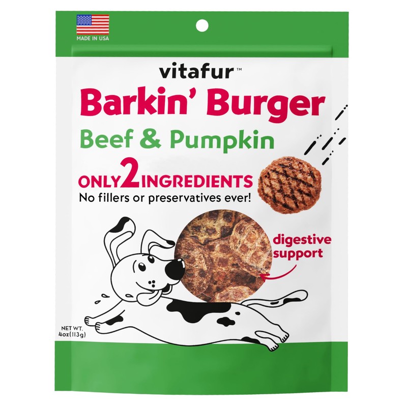 Vitafur Barkin Burger Grilled Beef & Pumpkin All Natural Dog Treats - Grain Free, Only 2 Premium Ingredients, Free from Fillers and Preservatives - Perfect for Sensitive Stomachs, USA Made, 4 oz