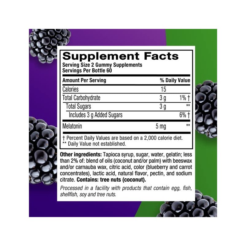 Vitafusion Extra Strength Melatonin BlackBerry, 5mg, 120 Count (2 Bottles)