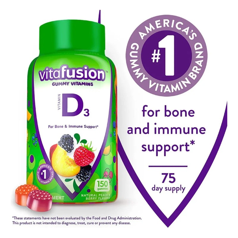 Vitafusion Vitamina D3 2000 UI: Huesos Fuertes y Soporte Inmune (150 Gomitas) ☀️🛡️