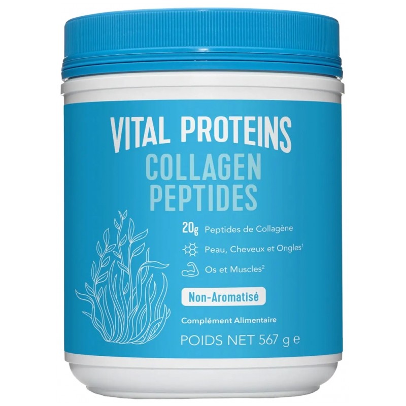 Vital Proteins Collagen Peptides 567g is a food supplement in powder, only based on collagen of bovine origin. These collagen peptides have a neutral taste, are suitable for mixing in hot or cold liquids and can be taken at any time of the day.
