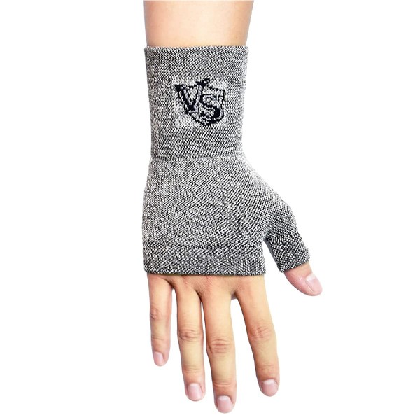 【VITAL SALVEO バイタルサルヴェオ】 着圧 リスト&親指サポーター ゲルマニウム&竹炭特殊繊維 左右兼用 手首&親指スリーブ CJ-5105 (1Pcs 片腕分) ライトグレー (L)