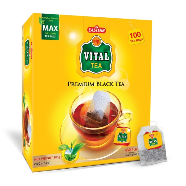 Vital Premium Black Tea Bags – 100 Count (2g Each) – Handpicked Kenyan Loose Leaf Blend – Rich & Smooth Black Chai – Double Chamber Tea Bags for Milk or Plain Tea – Strong Aroma – Vital tea bags 100 ct