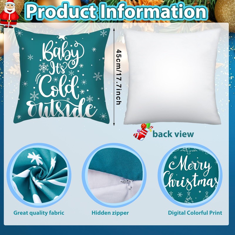 - Suitable Size: each cover pillow decorative for sofa Christmas is approx. 18 x 18 inches/ 45 x 45 cm, square shape and proper size fits for most standard pillows, equipped with zipper closure on the back, practical and convenient to insert and remove pillow cores