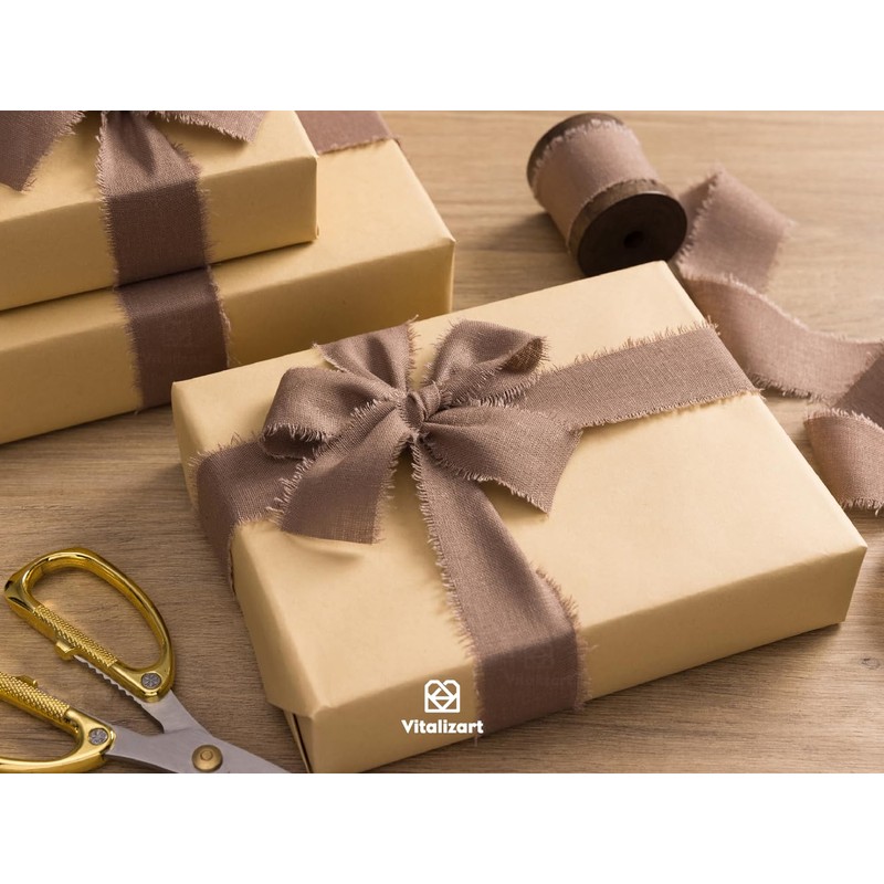 Vitalizart Brown Linen Ribbon with Spool 1.5" x 5Yd Rustic Frayed Cotton Linen Ribbon for Gift Wrapping Wedding Invitations Bridal Bouquets