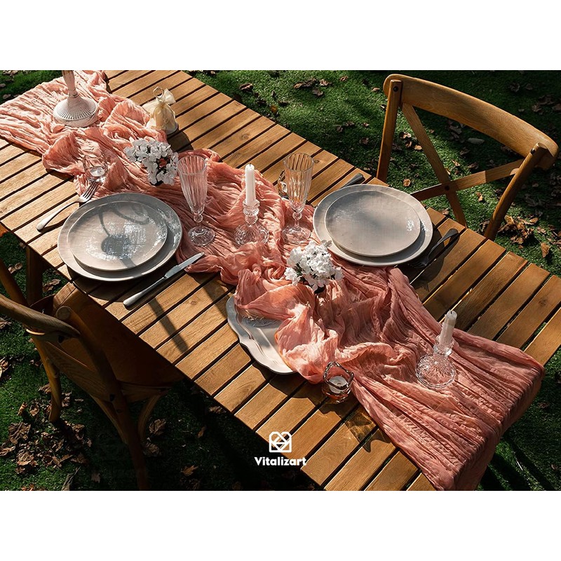 Vitalizart Cheesecloth Table Runner 10ft Gauze Boho Rustic Peach Pink Cheese Cloth Table Runner for Wedding Bridal Shower Fall Thanskgiving Decoration 120 Inches