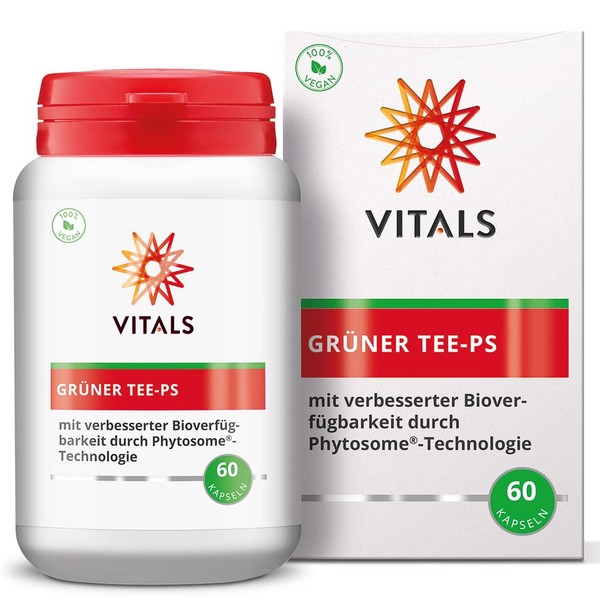 Vitals - Green Tea PS 60 Capsules, Vegan. With GreenSelect Green Tea Extract and Phytosome for Better Bioavailability. Decaffeinated, Detoxification