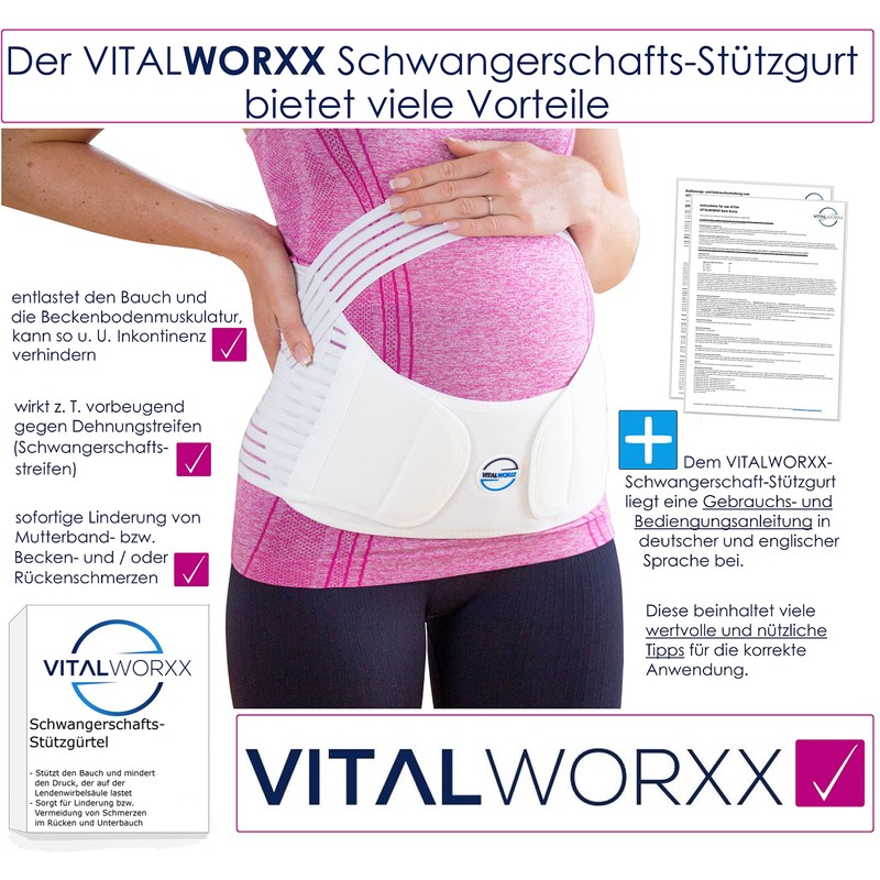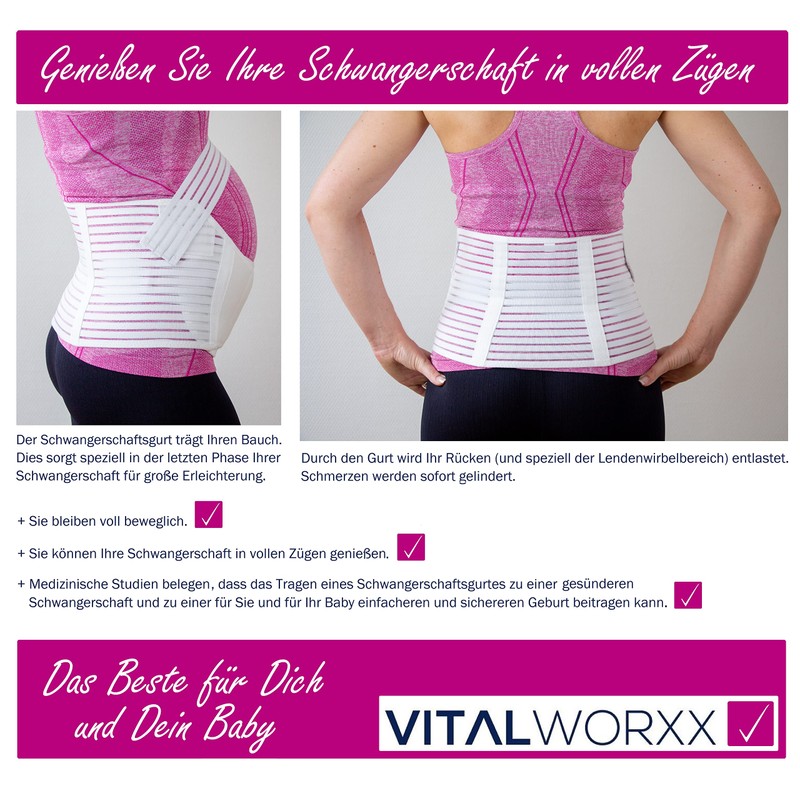 VITALWORXX® Schwangerschafts-Stützgürtel MIT GEBRAUCHSANLEITUNG, Schwangerschaftsgurt, Bauchgurt für die Schwangerschaft, stützt den Bauch, die Taille und den Rücken