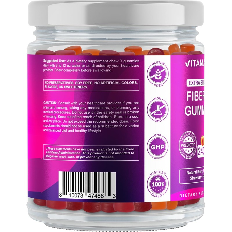 Convenient Gummies: With 240 gummies per bottle, these chewable supplements offer a tasty and convenient way to incorporate fiber into your routine.