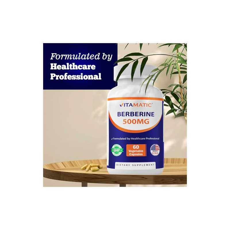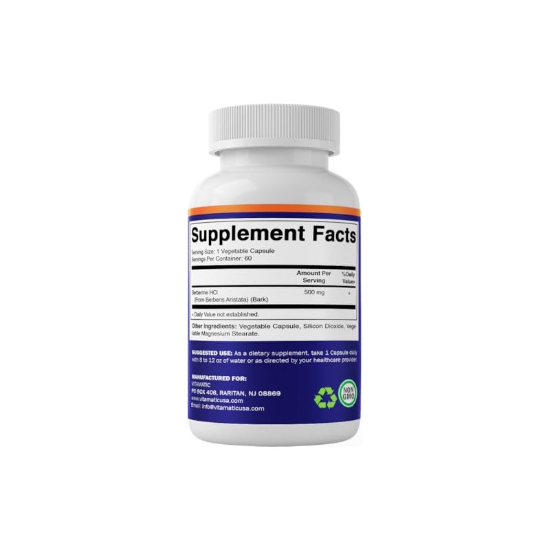 Vitamatic Vitamatic Berberine Supplement 500mg - 60 Vegetable Capsules - Made in The USA - Gluten Free - Non-GMO (2 Bottles)