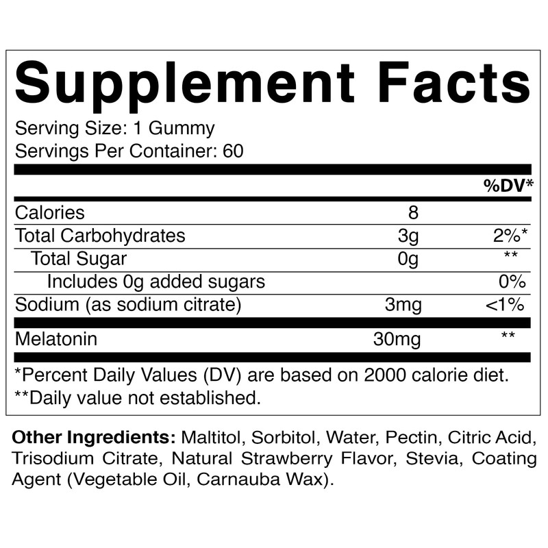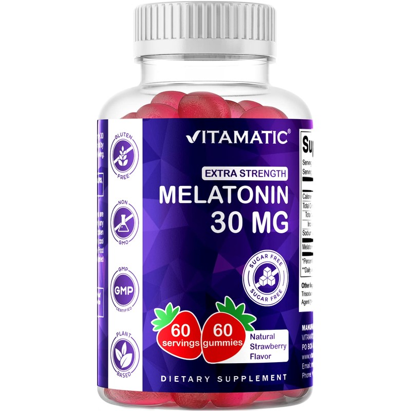 Vitamatic Sugar Free Melatonin 30mg per gummy - 60 Servings - 60 Vegetarian Gummies - Non-Habit Forming Supplement