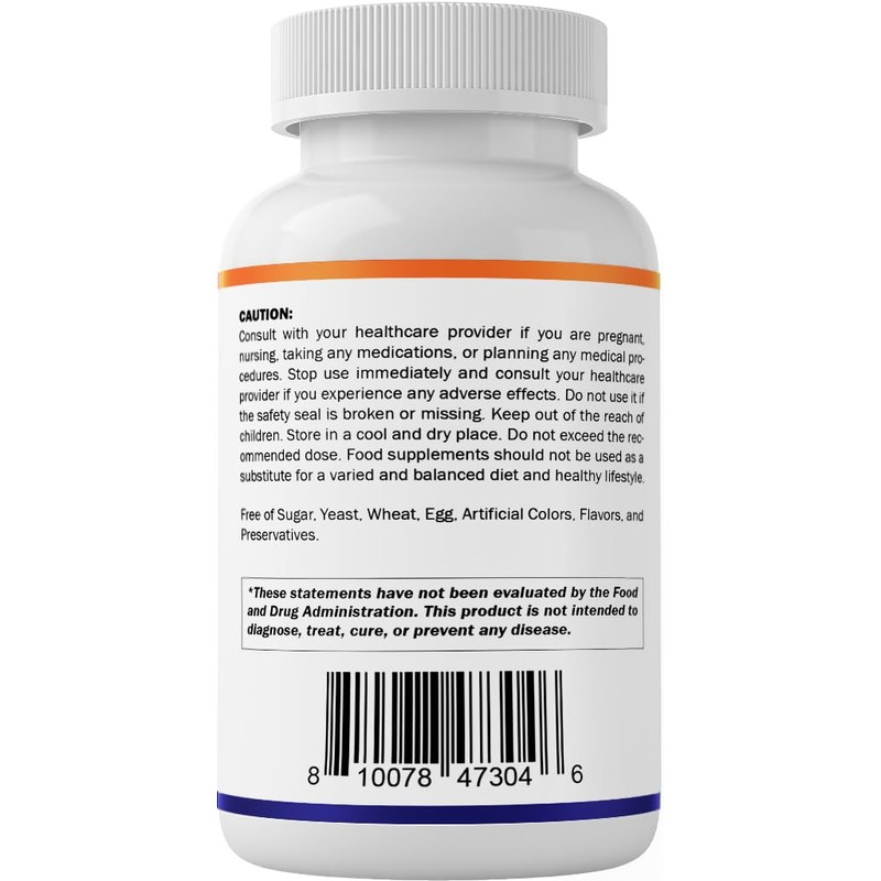 - Free of sugar, starch, soy, yeast, corn, wheat, egg, artificial color, flavor & preservatives.
