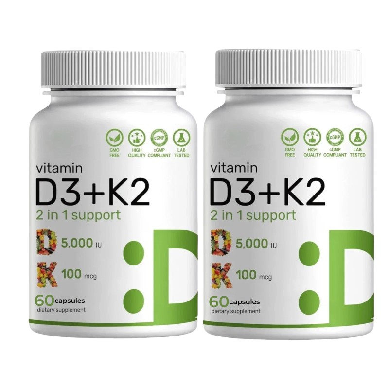 Vitamin 2-Pack Vitamin D3 + K2 Capsules – Immunity & Daily Wellness Support - 120 Caps