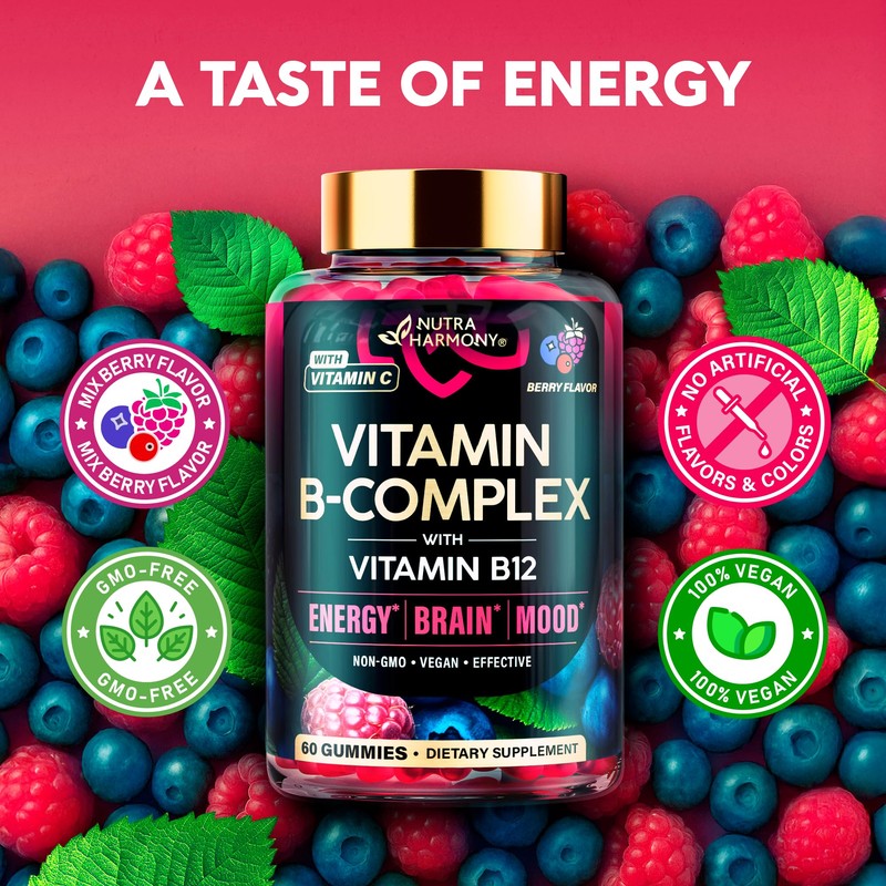 - Healthy & Yummy Gummy — experience the benefits of NUTRAHARMONY’s delicious B-complex gummies, crafted with your needs in mind. Enjoy a tasty and effective way to take your daily complex B support. Perfect for maintaining your routine with premium b vitamin complex energy gummies. Share your gummy-experience with us!