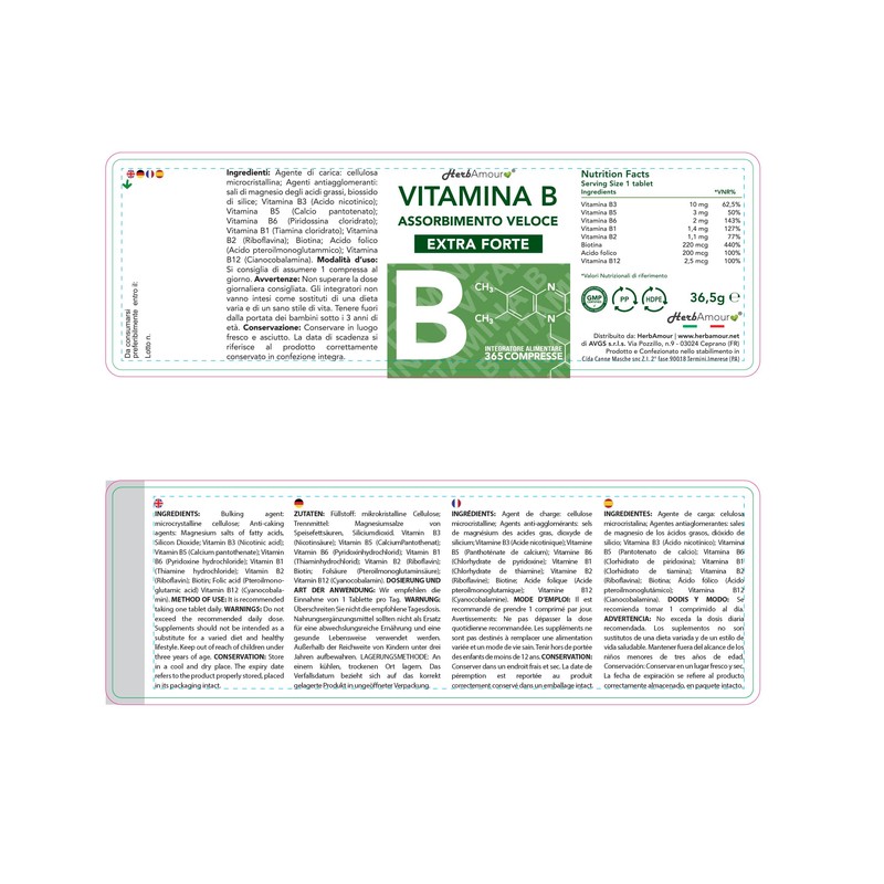 VITAMIN B EXTRA STARK | 365 Tabletten (12-Monats-Vorrat) | Vitamin-B-Komplex mit Vitamin B1, B2, B3, B5, B6, B12, Biotin, Folsäure | Gluten- und laktosefrei
