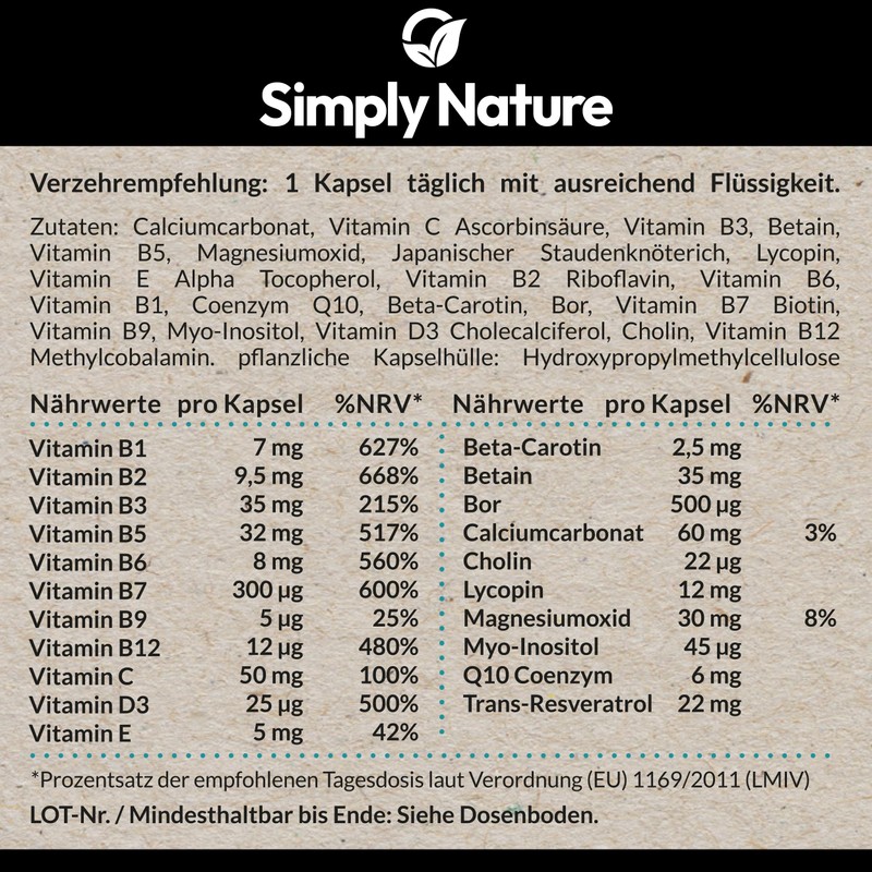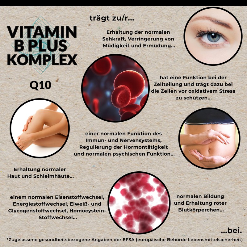 Vitamin B Plus Komplex mit Q10 und Beta Carotin - 120 Kapseln - hochdosiert
