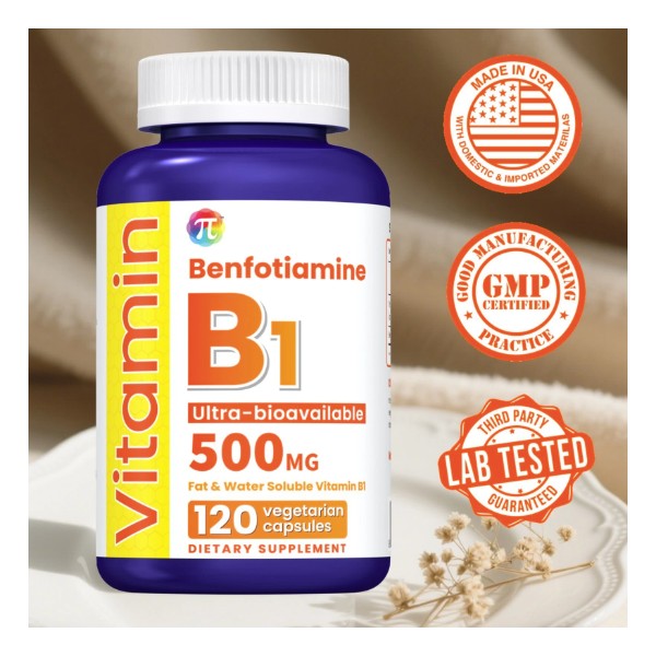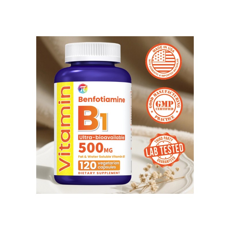 Vitamin B1 500 mg, Dietary Supplement for Energy Metabolism Support, 120 Capsule