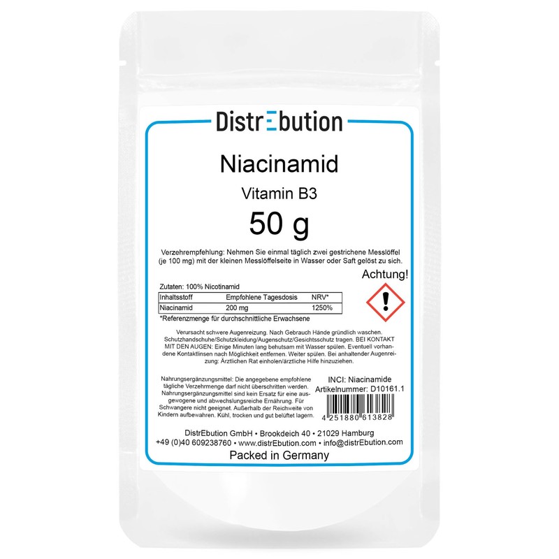 - Hohe Qualität: Reines Niacinamid (Vitamin B3) in Lebensmittelqualität und flush-free (verursacht keine Rötung der Haut).