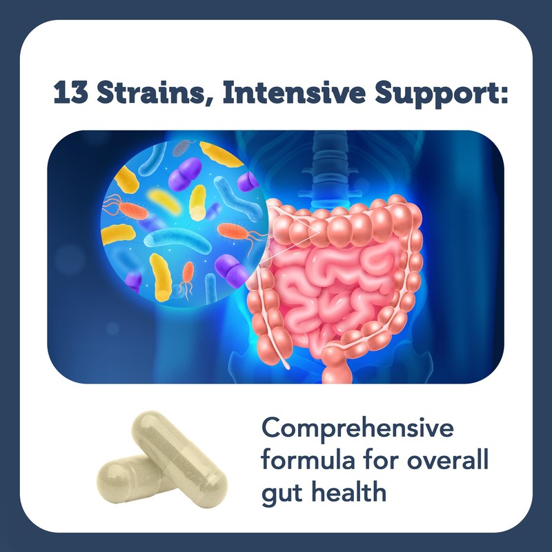 - 13 POWERFUL STRAINS: We've carefully selected 13 of nature's most potent probiotic strains to ensure you receive diverse and comprehensive support for your gut health. From Lactobacillus acidophilus to Bifidobacterium lactis, each strain plays a unique role in promoting a balanced and healthy gut microbiome.