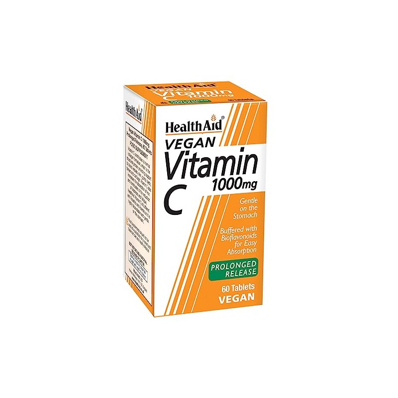 - HealthAid Vitamin C 1000mg S/R ist ein veganes Nahrungsergänzungsmittel mit gepuffertem Vitamin C und Bioflavonoide - sanft zum Magen - mit verzögerter Freisetzung der Inhaltsstoffe.