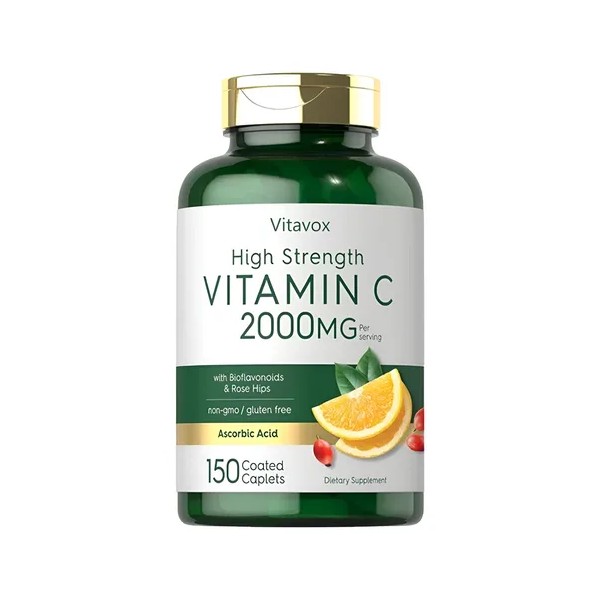 Vitamin C 2000mg | With Rose Hips | 150 Caplets|non-gmo