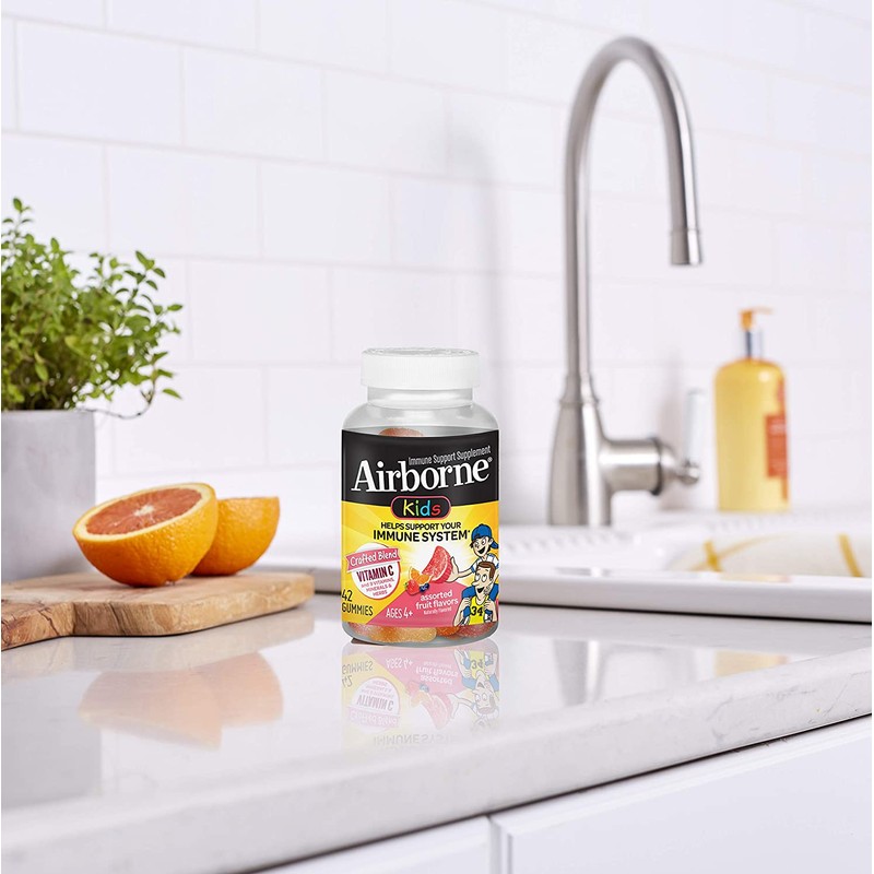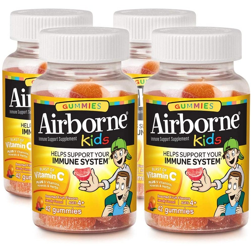 Vitamin C 500mg (per serving) - Airborne Kids Assorted Fruit Flavored Gummies (42 Count), Gluten-Free Immune Support Supplement With Vitamins A C E, Selenium, Echinacea & Ginger (Pack of 4)