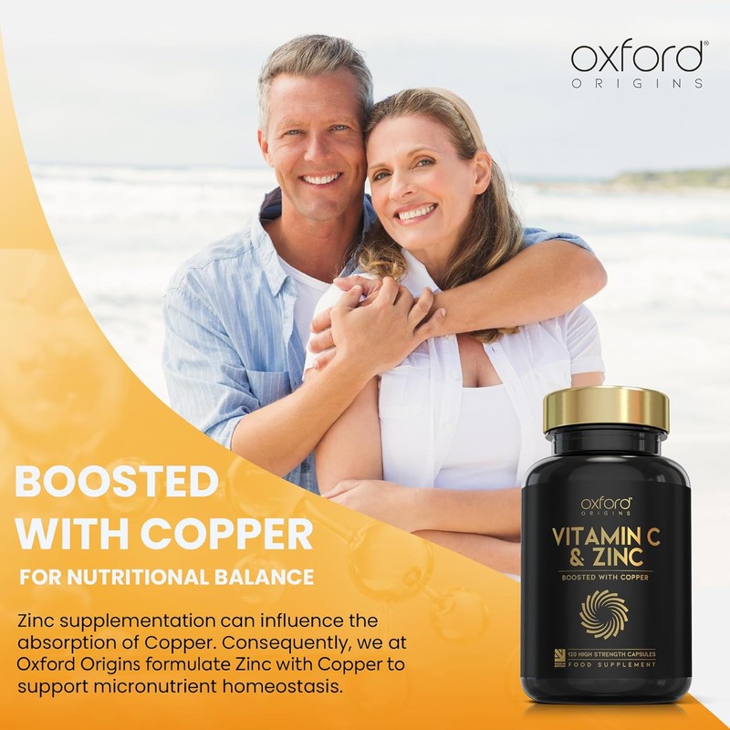 - ✔️ BOOSTED WITH ZINC AND COPPER FOR NUTRIENT BALANCE - While it's common to stack immune-boosting micronutrients Vitamin C & Zinc together, we at Oxford Origins go the extra mile - we formulate with Copper too. Why? Zinc and Copper utilise a common absorption pathway, if too much Zinc is consumed, it can create a Copper deficiency. Consequently, we include a measured dose of Copper to balance these nutrients and maintain optimal levels of both in the body.