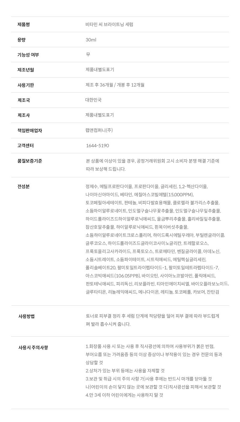 Vitamin C Brightening Serum 30ml / 비타민씨브라이트닝세럼30ml