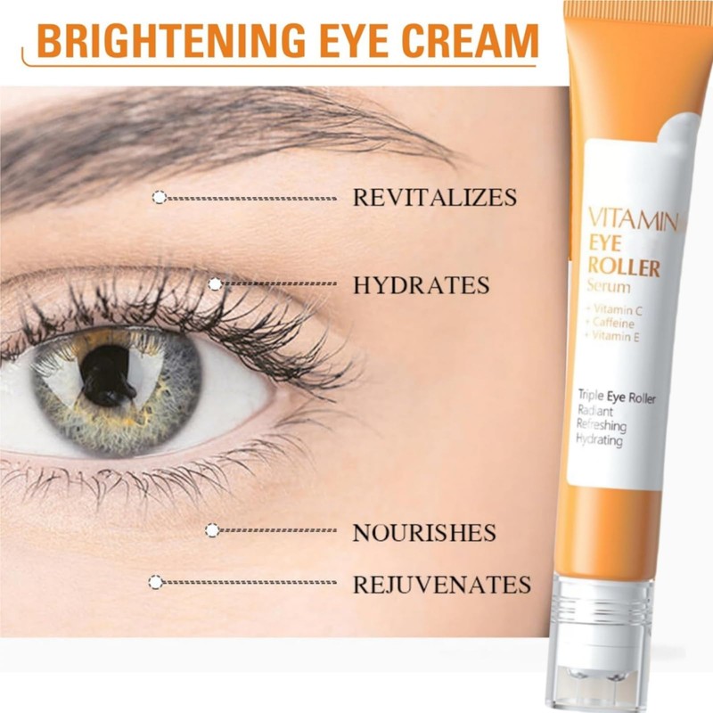 Vitamin C Eye Cream,Under Eye Cream For Dark Circles,Eyes Roller For Dark Circles And Puffiness,Liquid Eyes C-ream With Niacinamide,Caffeine,Brighten Instant Tightener,Smooth Fine Line,Wrinkle Filler