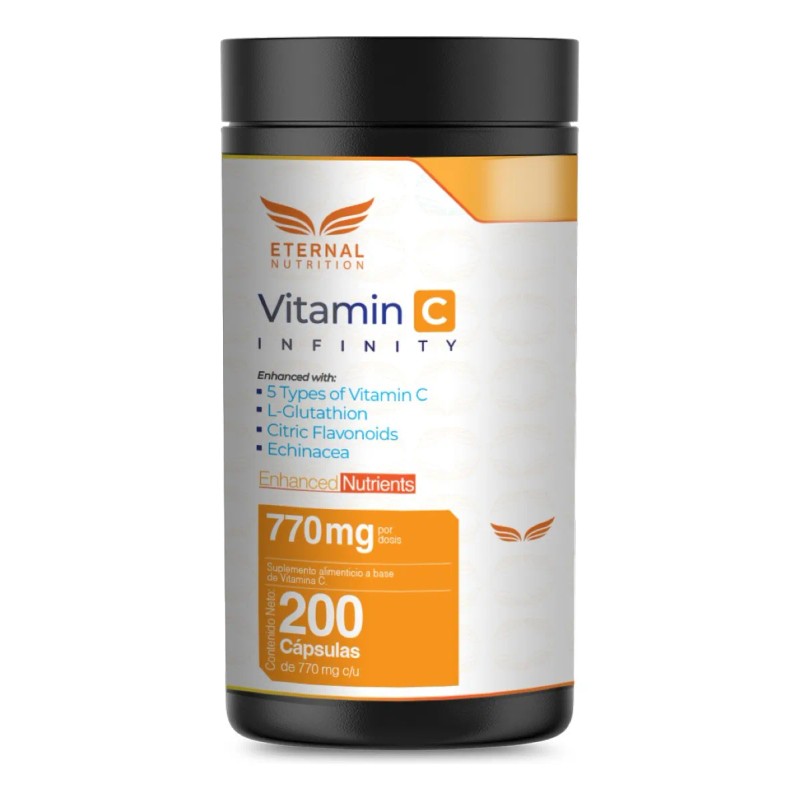 VITAMIN C INFINTIY GLUTATION 200 capsulas (770mg por porcion) Complejo de Vitamina C con Glutation, Zinc y Flavonoides