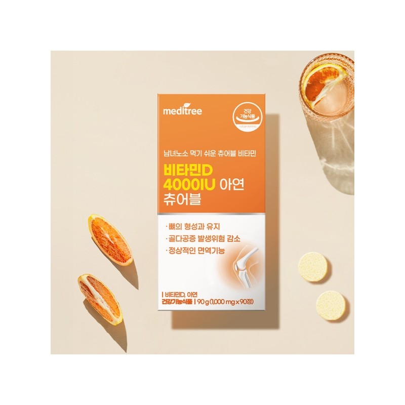 비타민D 4000IU 아연 츄어블 뼈건강 비타민디 4박스 12개월