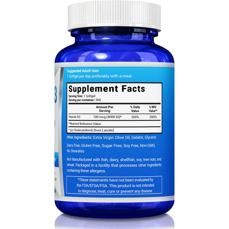 • High potency premium grade natural Vitamin D3 made from Lanolin plus Extra Virgin Olive Oil for maximum absorption; 5000iu (125 mcg) per softgel