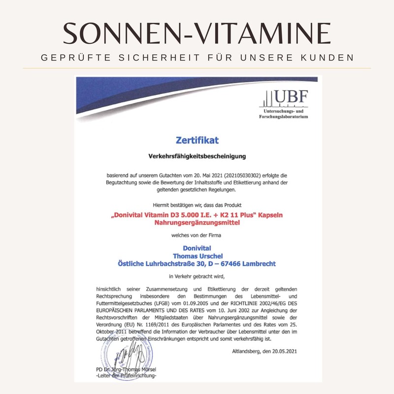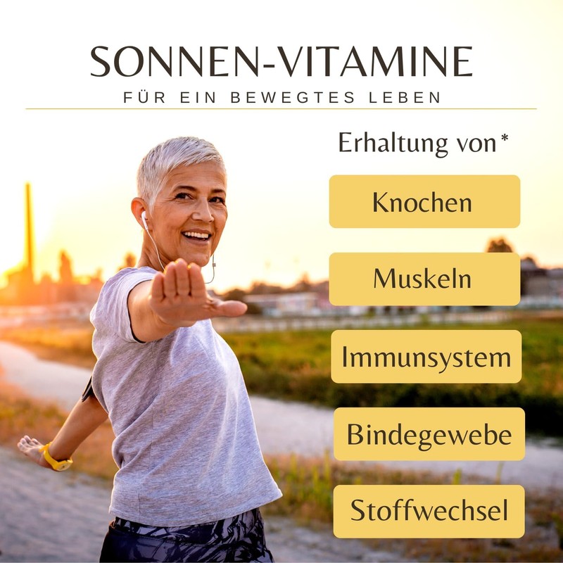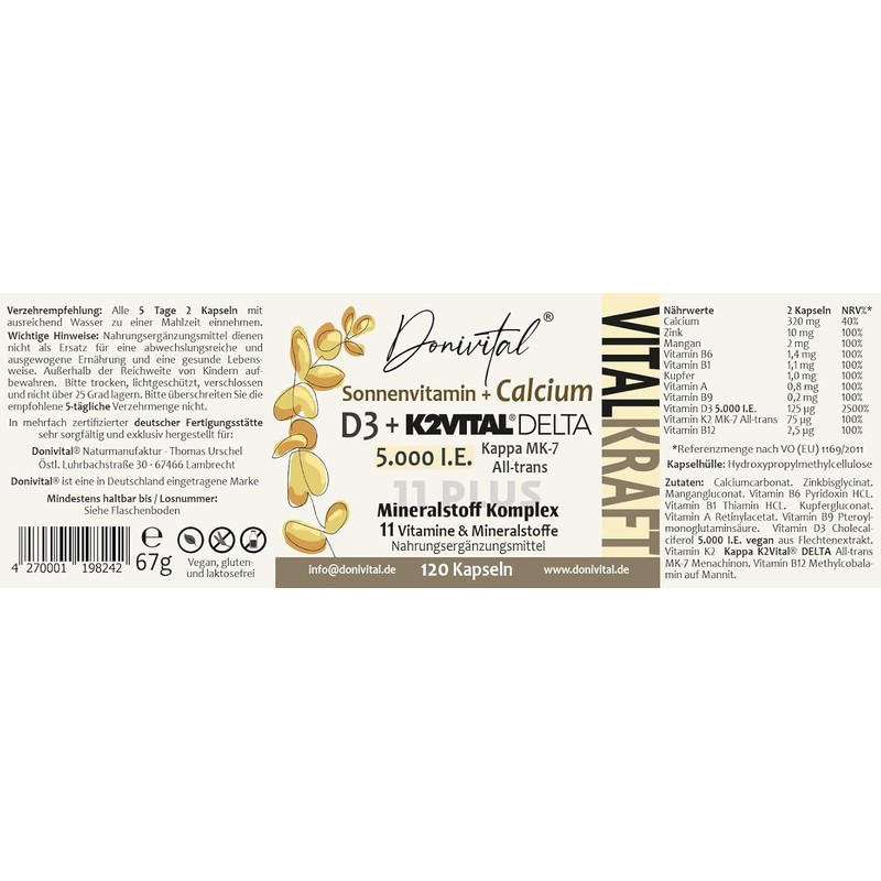 - ⭐ 11-fold active ingredient complex: Donivital sun vitamin with vitamin D3 from lichen (vegan) + K2 Kappa K2Vital Delta MK7 99.7% All-Trans + highly active calcium. 11 vitamins, minerals & trace elements for bones, muscles, energy metabolism and immune system. Vitamin D3 has been proven to contribute to the maintenance of normal bones and muscles, normal functioning of the immune system and normal absorption and utilisation of calcium.