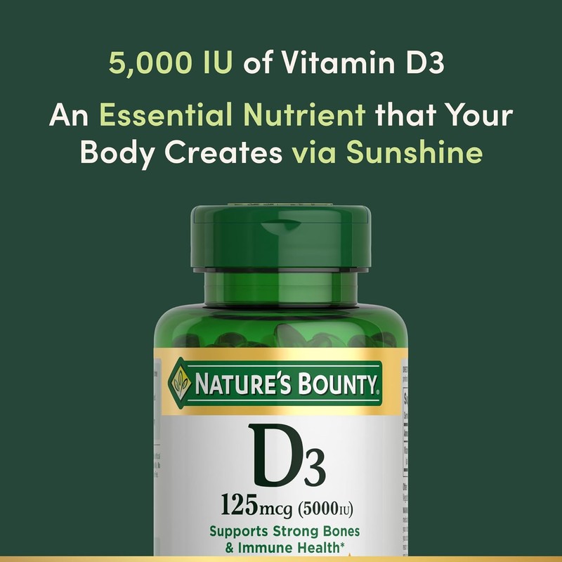 - YOUR DAILY SUNSHINE VITAMIN: Nature's Bounty Vitamin D3 replicate the form produced by sunlight, aiding in the maintenance of optimal Vitamin D levels (1)