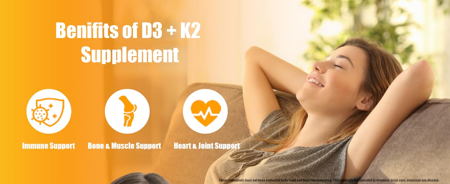 - Vitamin D3 K2: With 5000IU Vitamin D3 for optimal calcium absorption and 100mcg K2 (as MK-7) to activate osteocalcin, this duo ensures calcium goes to bones, not arteries. Supports bone health & heart health. A perfect duo for optimal calcium balance!