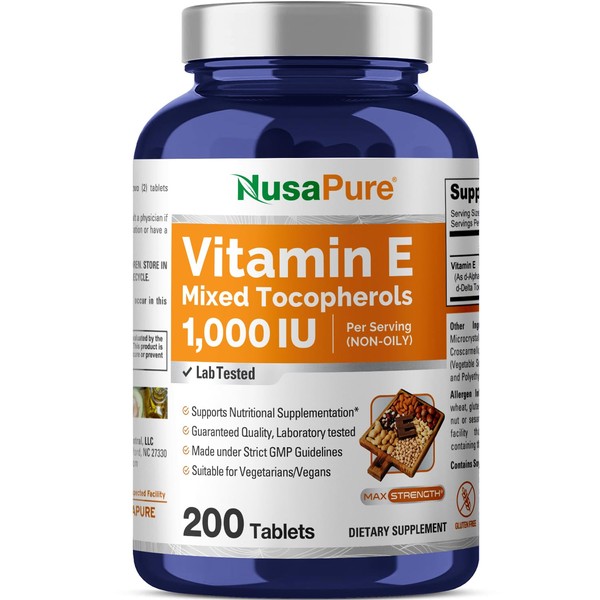 NusaPure Vitamin E 1000 IU 200 Tablets (Non-GMO, Gluten-Free) - Mixed Tocopherols
