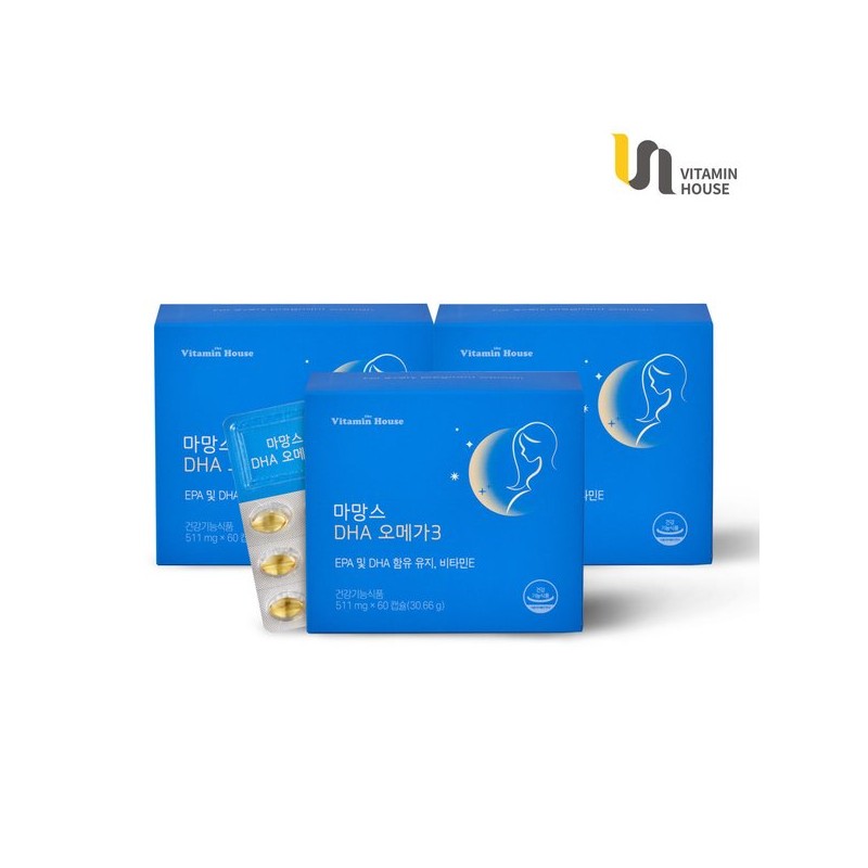 Vitamin House 마망스 DHA 오메가3 60캡슐 3박스 (3개월분) Mamans DHA Omega-3 60 Capsules 3 Boxes (3 Months Supply)