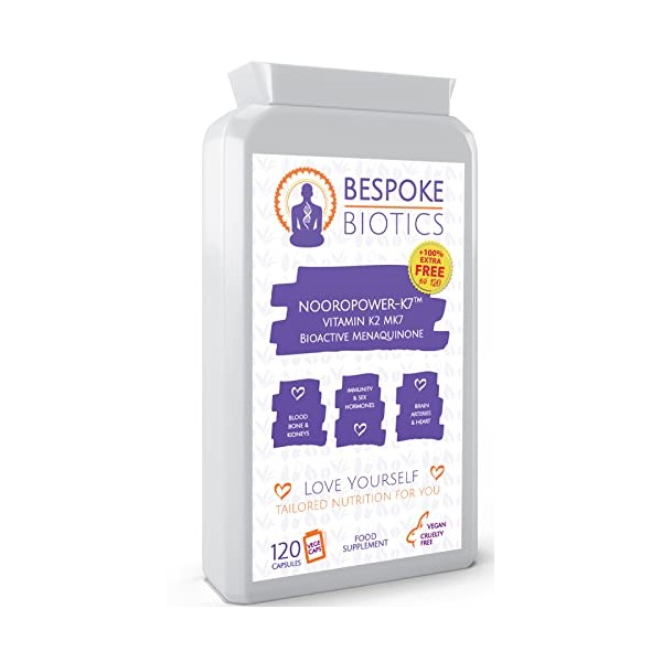 Vitamin K2 MK7-120 Easy Swallow Capsules not Tablets- Nooropower-K7 Pro, Protein Synthesis Vegan| Bone Health - Fracturing Nose Bleeds Heart Better Than Menaquinone K2 MK4 | Safe Dose UK Made