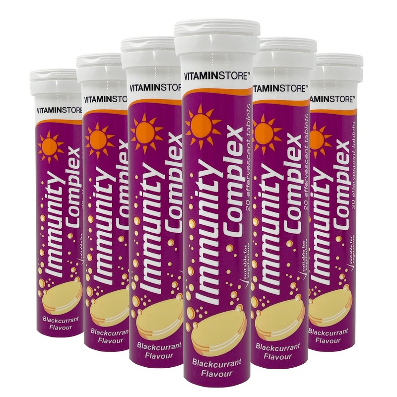 Vitamin Store Immunity Complex Effervescent Tablets, Blackcurrant Flavoured, Suitable for Vegetarians, 6 Packs of 20