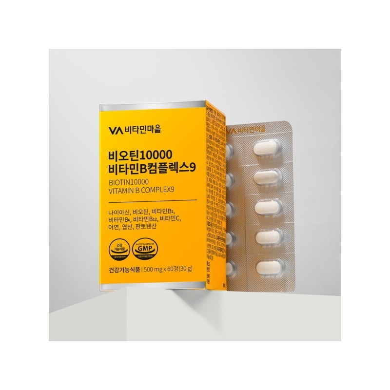 Vitamin Village Biotin 10000 Vitamin B Complex 9 60 tablets x 1 box (2-month supply) / 비타민마을 비오틴 10000 비타민B 컴플렉스9 60정 x 1박스 (총2개월분)