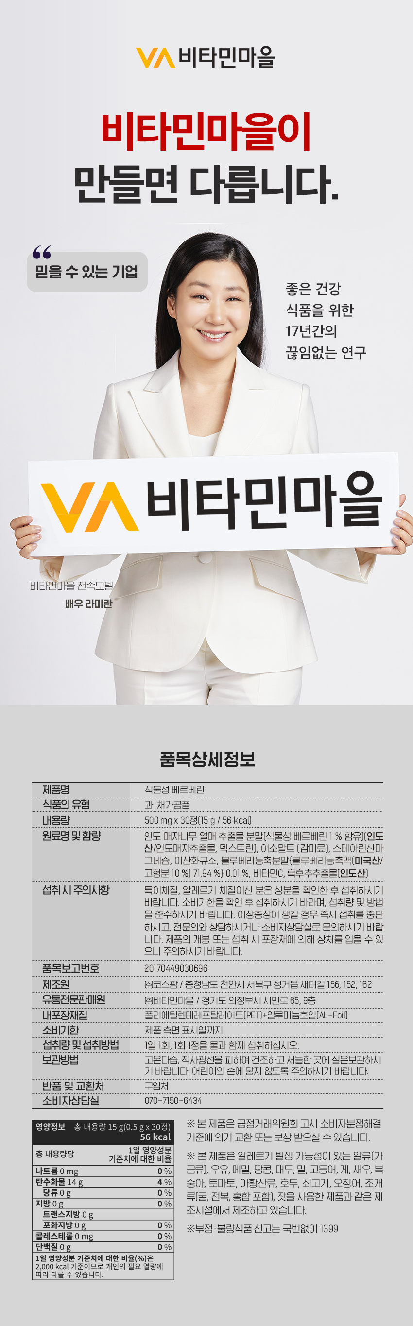 비타민마을 식물성 베르베린 30정 x 4박스(총4개월분)