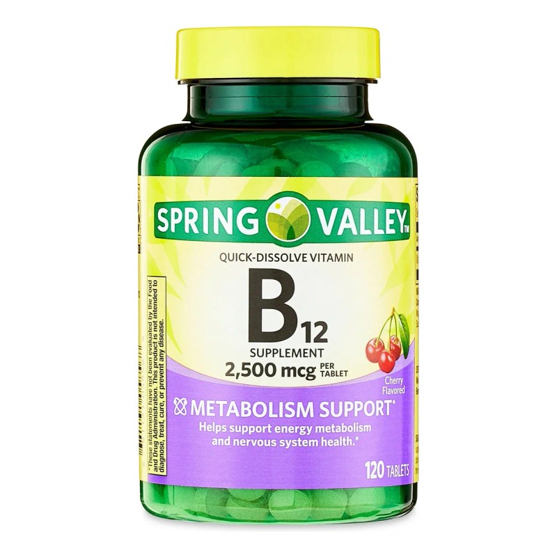 Spring Valley Tabletas de Disolución Rápida de Vitamina B12 2,500 mcg 120 Tabletas sabor cereza*