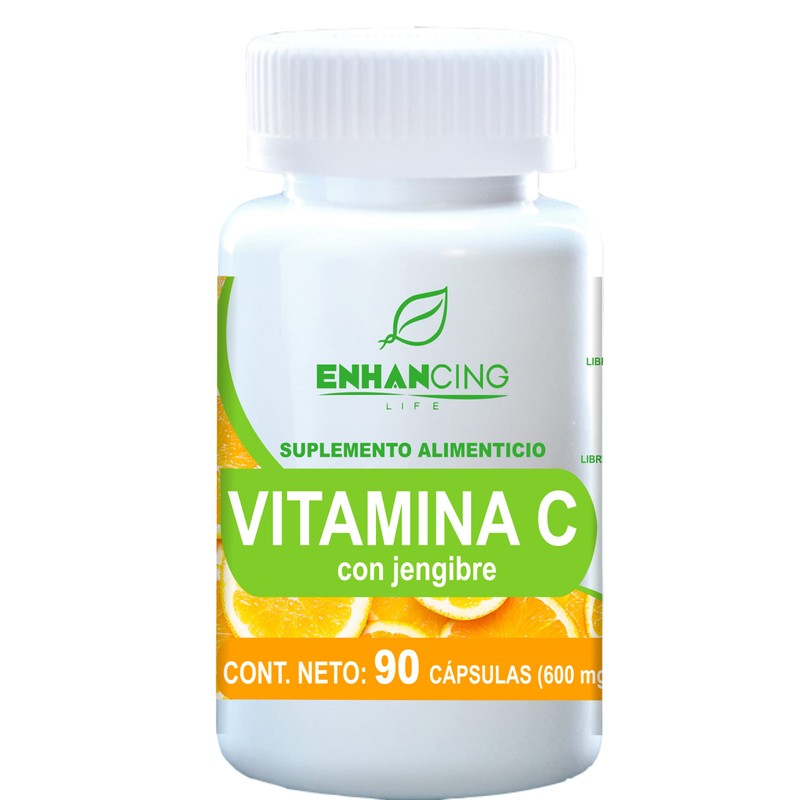 VITAMINA C + JENGIBRE | 90 CÁPSULAS DE 600mg (HASTA 3 MESES) | INGREDIENTES NATURALES